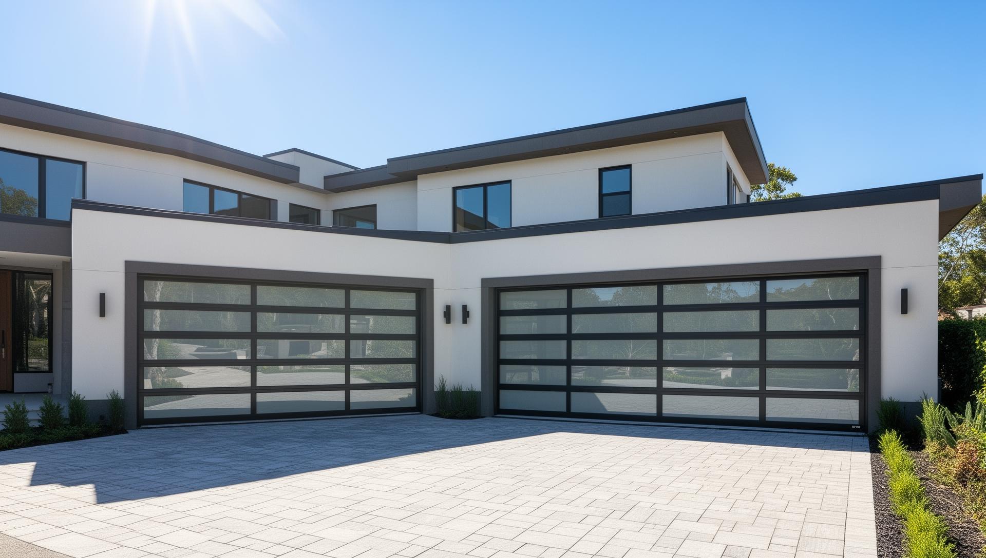 Modern contemporary home with aluminum glass panel garage doors - professional installation by Garage Door Wilmot